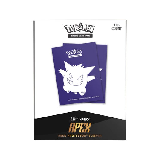 Las fundas protectoras APEX Deck Protector™ de 105 unidades para JCC Pokémon están fabricadas con nuestra nueva fórmula fácil de barajar y presentan una vibrante ilustración de Gengar sobre un reverso texturizado. El polipropileno, con un acabado de archivo, te garantiza que puedas enfundar tus cartas con total confianza, y el frontal transparente brillante permite que tus cartas foil brillen. Tamaño estándar para cartas coleccionables de 6,35 x 8,99 cm.